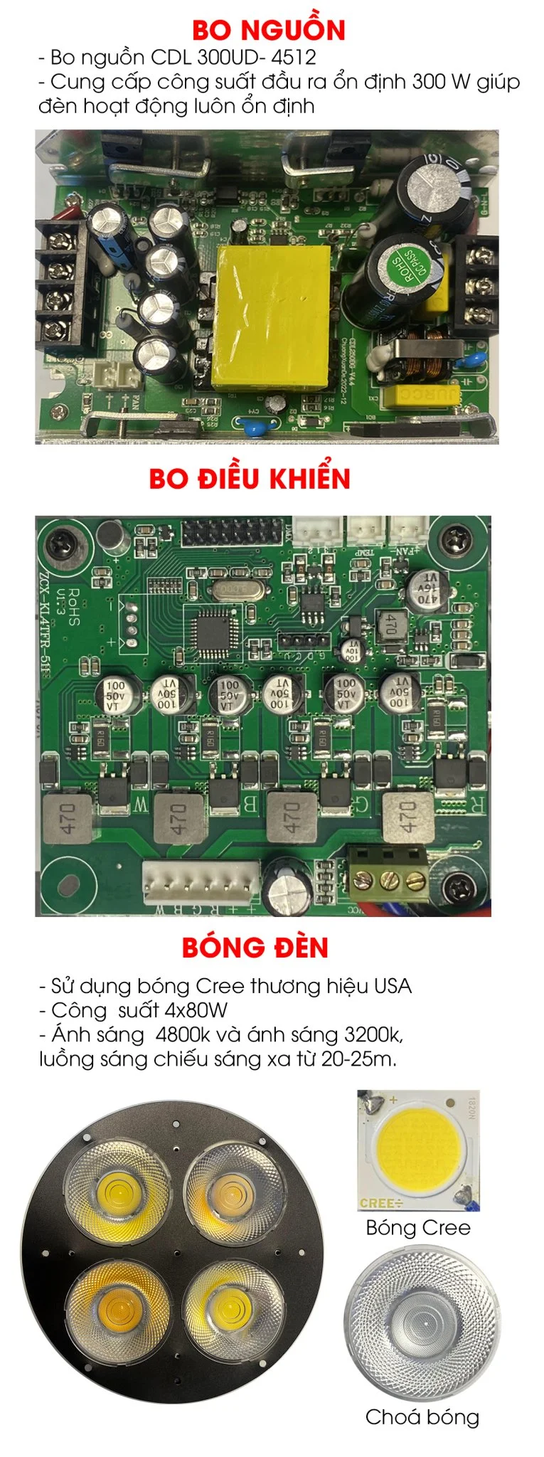 - Công suất bóng: 4 x 80W